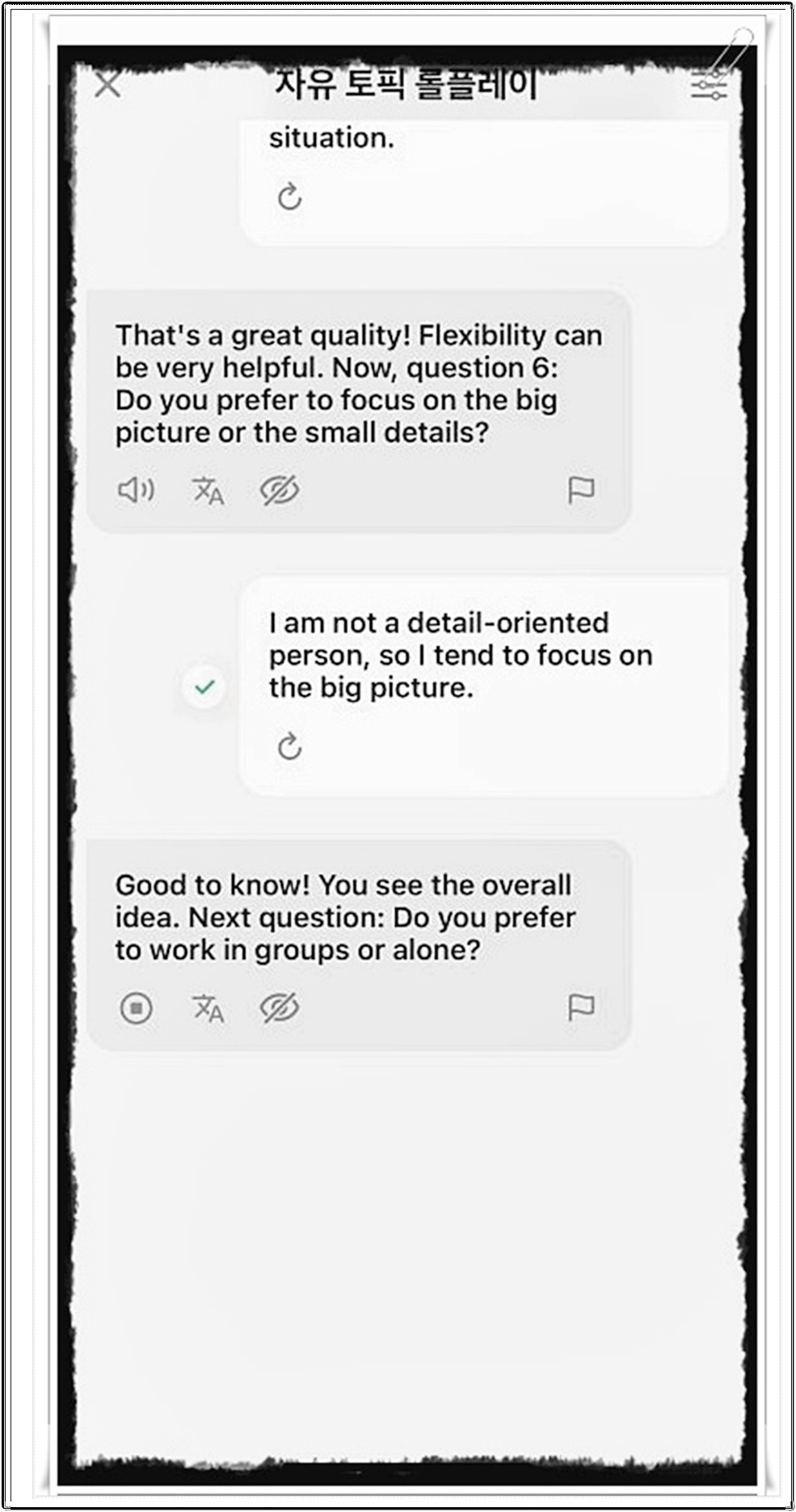 - 다양한 주제에 대해 자유롭게 대화하면서 자연스럽게 영어 실력을 향상시킬 수 있습니다.