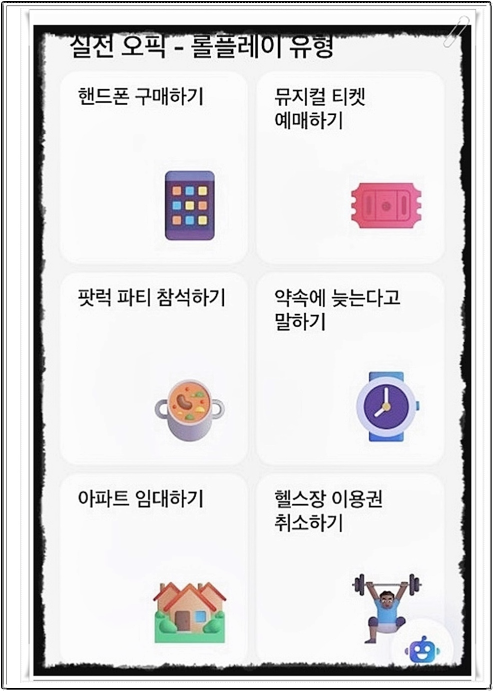 - 일반적인 영어 회화 앱과 달리 직장 내에서 바로 사용할 수 있는 영어 표현을 집중 학습 가능